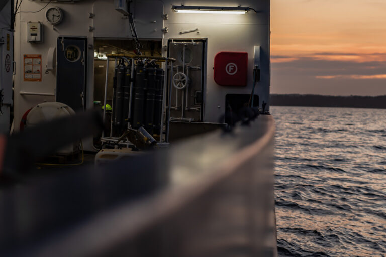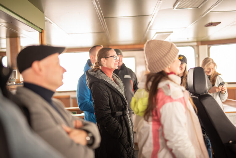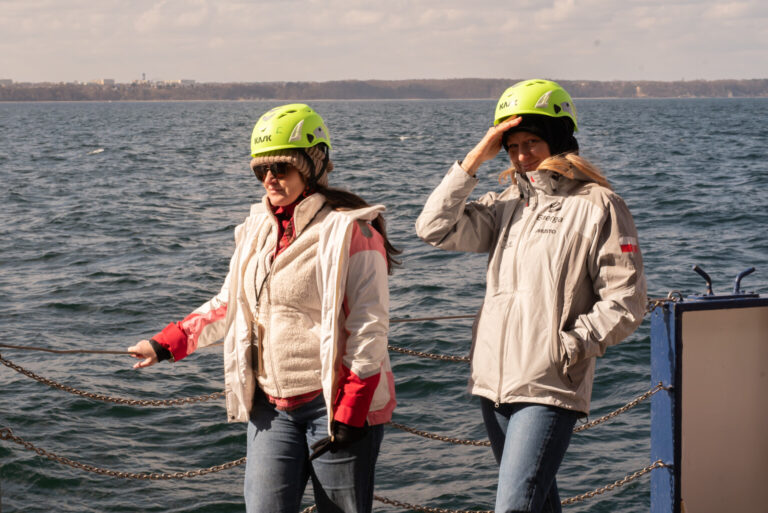 Uczestnicy mieli również możliwość zapoznania się z zakresem prac prowadzonych podczas rejsu, obejmujących mapowanie dna morskiego, pobór próbek wody i osadów oraz analizy środowiskowe