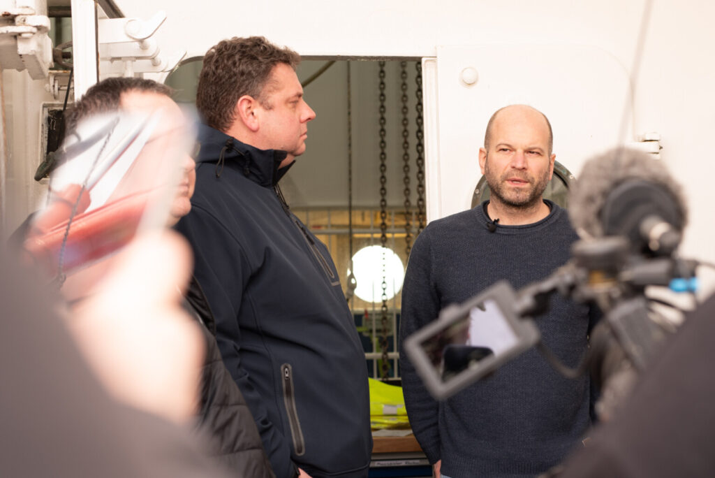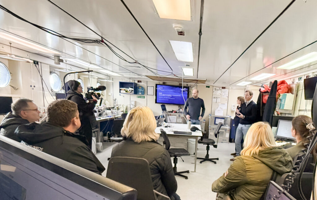 Wczoraj jednostka zawinęła do portu w Kłajpedzie, gdzie na pokładzie odbyło się spotkanie z przedstawicielami litewskich instytucji zajmujących się ochroną środowiska morskiego. Była to okazja do zaprezentowania założeń projektu, zakresu prowadzonych badań oraz wymiany doświadczeń