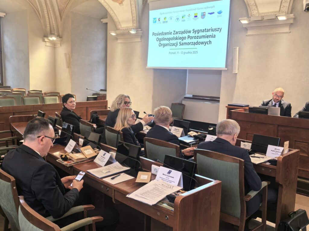 W dniu 11.12.2025 w Poznańskim Ratuszu, przedstawiciele Stowarzyszenia – wiceprzewodniczący Tomasz Sielicki i Dyrektor Marcin Żuchowski – uczestniczyli w Posiedzeniu Zarządu Sygnatariuszy Ogólnopolskiego Porozumienia Organizacji Samorządowych (OPOS).